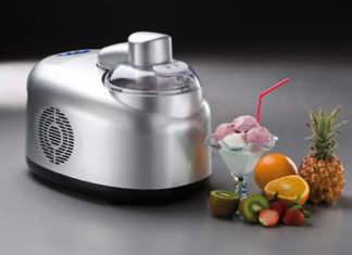 Gelatiera automatica con compressore. Capacità della vaschetta in alluminio per produrre fino a 800 grammi di gelato. Timer digitale 50 minuti