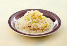 Doppie tagliatelle di grano Khorasan e porri in crema di sedano rapa