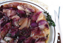 Mini tarte tatin di polenta con pecorino, prugne e cipolla rossa