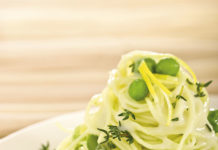 Spaghettini al limone con piselli e asparagi