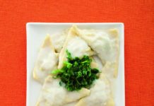 Ravioli di riso al vapore con ripieno di zucca e olio aromatizzato al pepe...