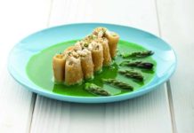 Paccheri farciti in crema di bietole e crumble di asparagi