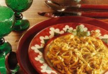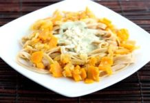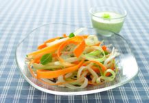 Tagliatelle di carote e gambi di sedano con pesto leggero di foglie di sedano