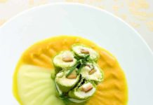 Mini cannelloni verdi al formaggio in vellutate di zucca e topinambur