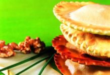 Ravioloni croccanti al taleggio e porri con pere e noci