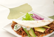 Tortillas messicane con chili di lenticchie, yogurt e avocado