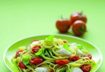 Linguine con zucchine, mozzarella di bufala e pomodorini arrosto