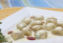 Gnocchi di patate ai pistacchi con salsa di caciotta al timo