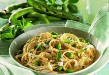 Spaghetti con ricotta e fave
