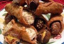 Cannolo alle nocciole con crema di marroni su crema di caffè