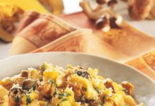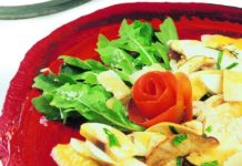 Insalata di porcini con scaglie di grana e composta d’arancia