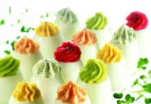 Uova sode ripiene multicolori