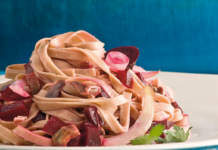 Tagliolini di castagne con barbabietole e funghi trifolati