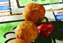 Polpettine di melanzane al cuore di cacio con mousse di pomodoro