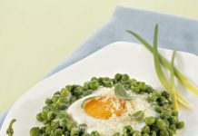 Uova in nidi di piselli con salvia e grana