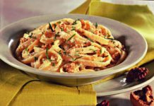 Spaghetti alla rucola e cipollotti con olive e capperi