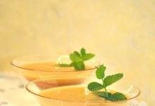 Frullato di prugne e melone con ribes rossi marinati