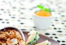 Sedano rapa farcito agli spinaci con salsa di carote e chips