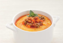 Grano saraceno con ortaggi e castagne con crema di cavolo rosso