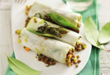 Involtini di porri con lenticchie e lattuga
