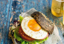 Burger di funghi portobello con uova e pomodori