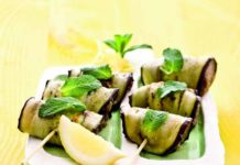 Spiedini di melanzane e zucchine con farcia di ceci e olive