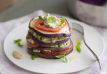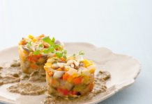 Tortini di peperoni, melanzane e pinoli con salsa alla maggiorana