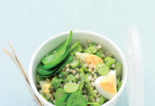 Insalata di grano saraceno con fave, asparagi e uova