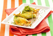 Fiori di zucca ripieni al forno con salsa di cipollotti