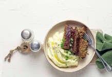 Polpettone di lenticchie, funghi e noci con purè di patate