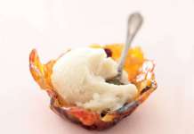 Gelato di pere e mandorle in cestini di croccante alla frutta secca