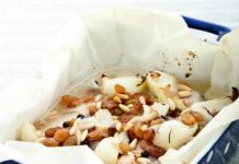 Sgombri al forno con cipollotti, uvetta e pinoli