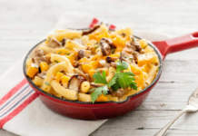 Pasticcio di maccheroni di riso alla ricotta con zucca e porcini