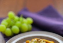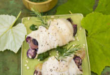 Involtini di sogliola al forno con mandorle e uva in salsa verde