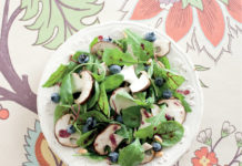 Insalata di porcini freschi, foglie colorate e piccoli frutti