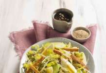 Insalata ricca con fagiolini, tofu e uova al sesamo