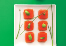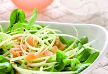 Sedano marinato con salmone affumicato, mandorle e valerianella