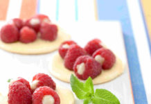Lamponi ripieni con crema di pinoli su cioccolato bianco