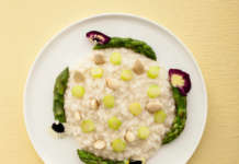 Risotto in crema di cavolfiore con asparagi e mandorle