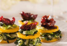 Dadolata di finocchi e frutta secca in cestino di parmigiano