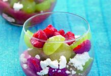 Dessert di uva alla vaniglia con salsa di fichi e pesca