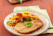 Cotolette di ceci e porri con peperoni al limone