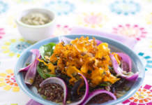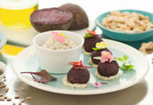 Polpettine crude di barbabietola e semi con salsa tartara di anacardi