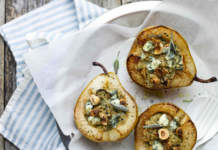 Pere gratinate farcite di quinoa, gorgonzola, nocciole e salvia