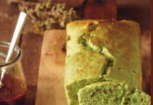 Plumcake salato di piselli e semi con salsa rossa allo scalogno