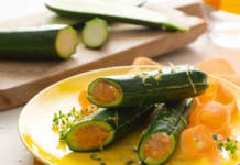 Zucchine farcite con hummus di carote e olio al limone