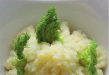 Morbida purea di patate a vapore con crema di finocchi e cipolle