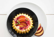 Mini tarte tatin di polenta con pecorino, prugne e cipolla rossa