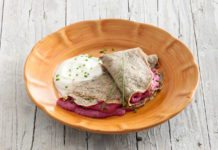 Crespelle di farina di lenticchie e barbabietole con salsa bianca all’erba cipollina