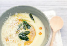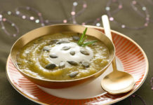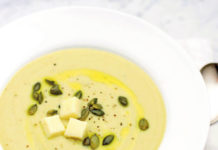 Vellutata di cavolo romanesco e taleggio con semi di zucca tostati